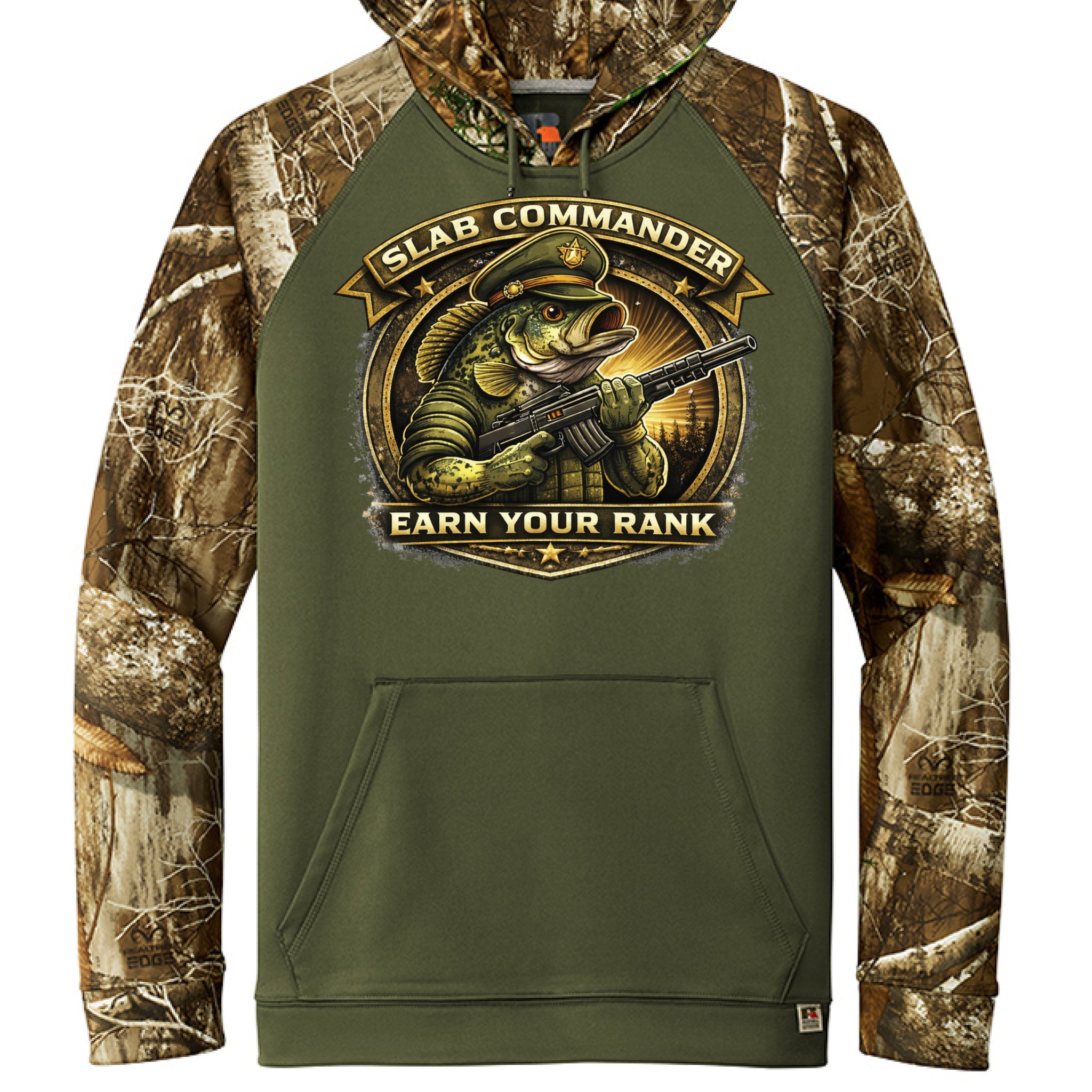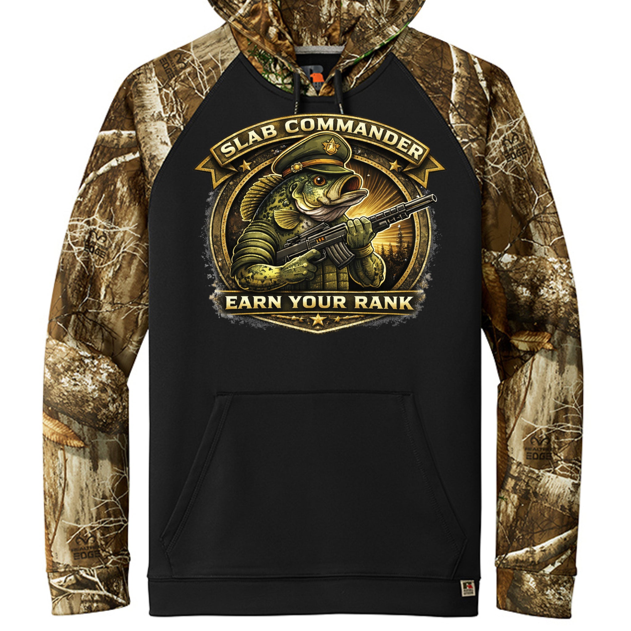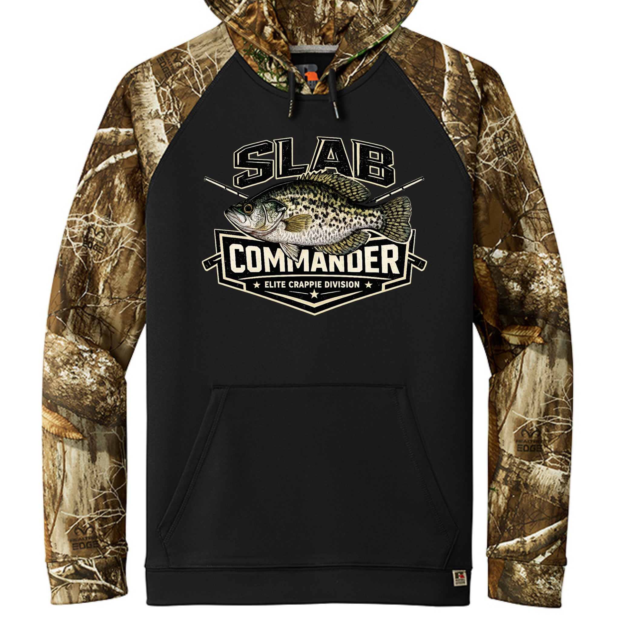 Russell Outdoors™ Realtree® Performance Colorblock Pullover Hoodie 6.5 oz, 100% polyester with moisture-wicking Tag-free label Realtree EDGE® print Hood with metal grommets and tips on...